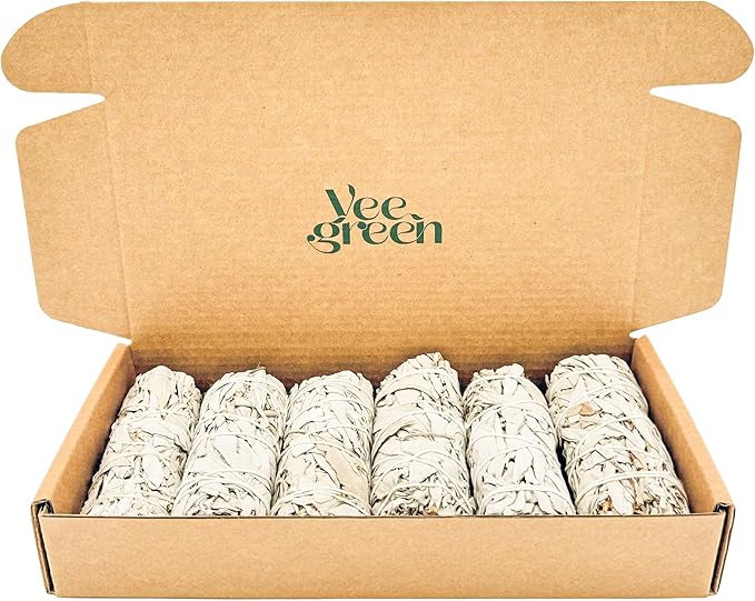 6 smudges de sauge blanche Salvia Apiana, (env. 10 cm) ainsi qu’un guide spirituel.